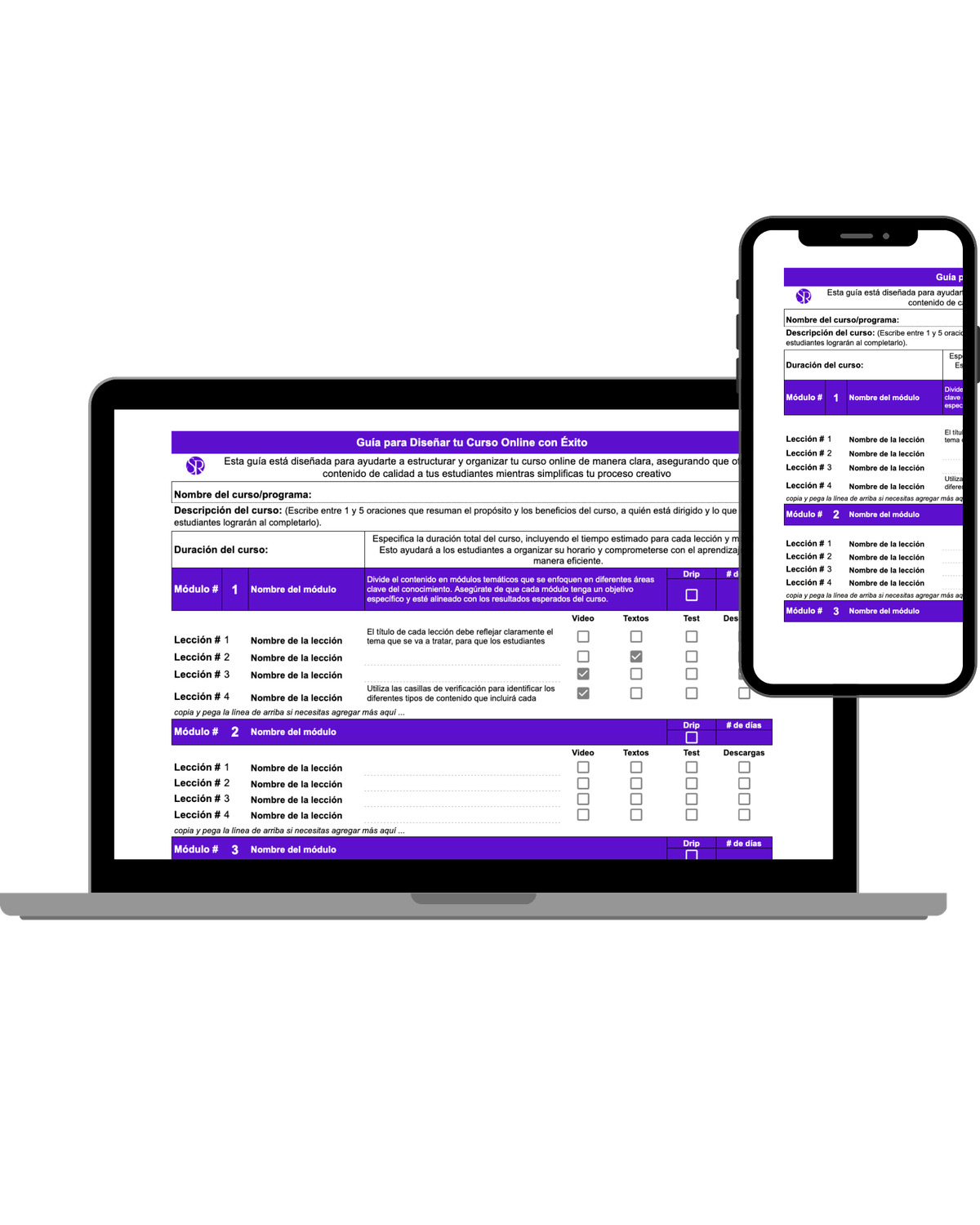 Con esta guía gratuita, podrás comenzar a estructurar tu curso online de manera efectiva. Te proporcionaré los pasos clave para organizar tu contenido, crear lecciones atractivas y diseñar materiales que mantendrán a tus estudiantes comprometidos desde el primer día.